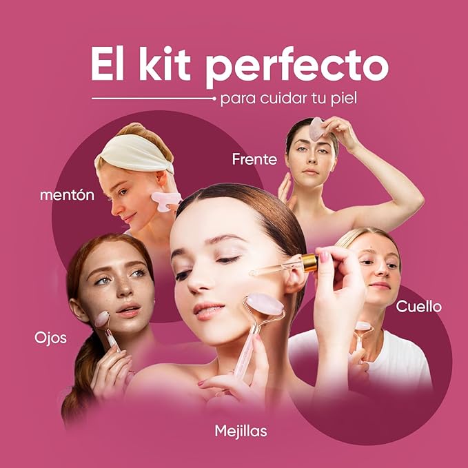 Kit Rodillo Facial + Gua ShaEl Gua Sha y el Rodillo facial son masajeadores faciales que se han convertido en tendencia de belleza ya que ayudan a mejorar la apariencia de la piel considerablemente, convirtiéndose en una poderosa herramienta anti-edad.